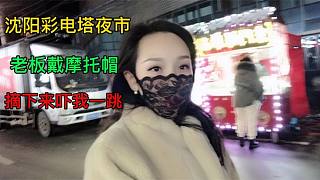 東北夜市太冷了,老板戴摩托帽賣炒燜子,妹子躲進(jìn)超市蹲著吃