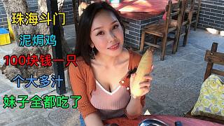 珠海斗門泥焗雞,糊上黃泥放火上烤,鮮嫩多汁,妹子一人吃一只