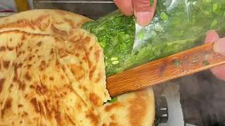 天津大集上現做的肉餅,一張六斤重皮薄餡大