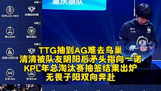 TTG抽到AG難去鳥巢,清清被隊(duì)友陰陽后矛頭指向一諾!KPL年總淘汰賽抽簽結(jié)果出爐:無畏子陽雙向奔赴