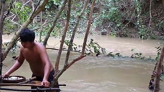 在河里抓幾只蝦配肥雞腿,搭配酸辣面,大口吃真過癮